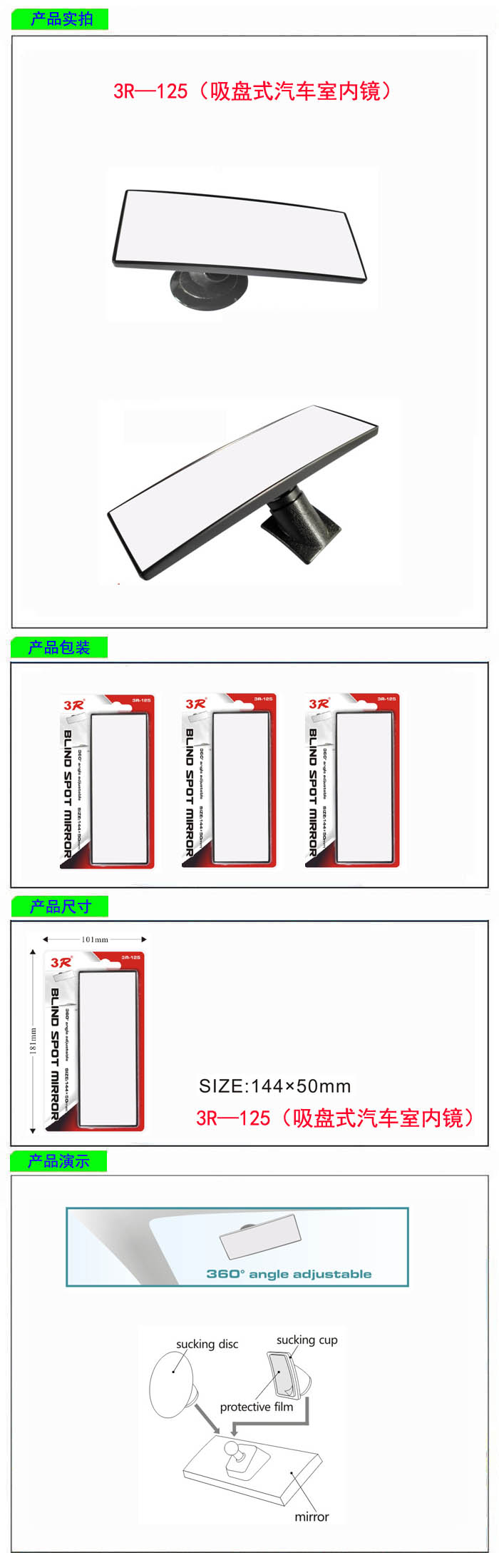 • 型號:   3R—125(吸盤式汽車室內(nèi)鏡)