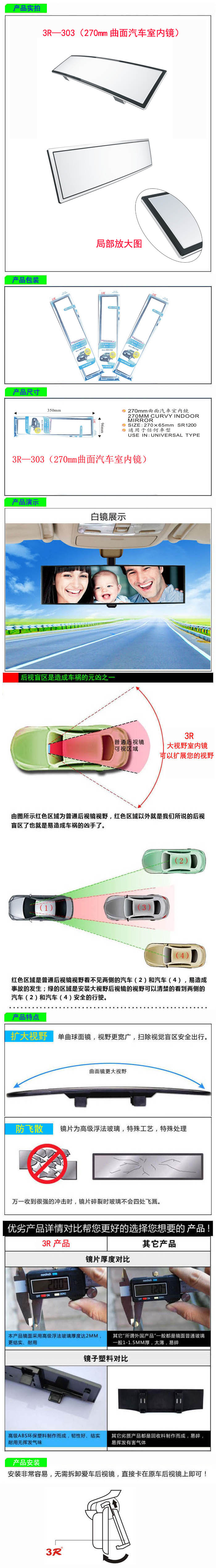 • 型號:   3R—303(270mm曲面汽車室內(nèi)鏡)